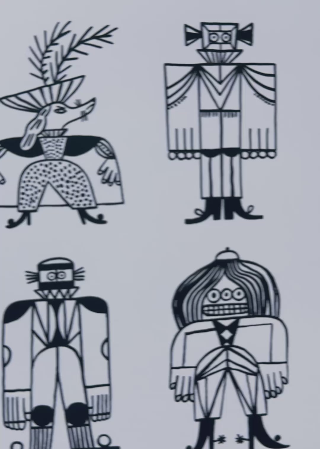 Kingdom begann mit Skizzenbuchexperimenten. Ich zeichnete verschiedene Charaktere, die unterschiedliche Facetten meiner Ängste widerspiegelten. Dieser Druck vereint einige davon. Tinte auf Papier.