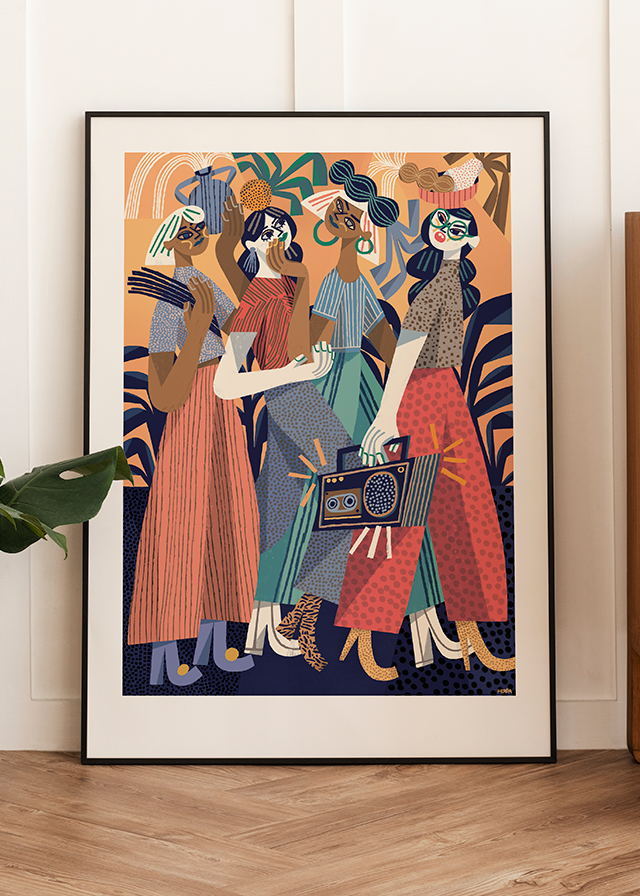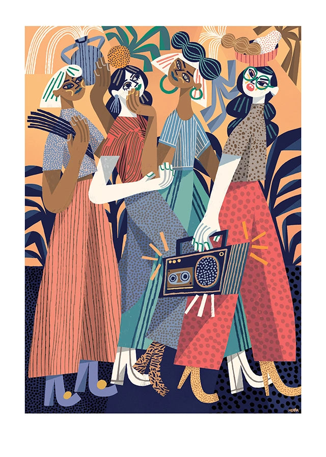 After work illustration by Gosia Herba. Part of a series inspired by the vibrant, sun-soaked paintings of Azerbaijani artist Maral Rahmanzadeh. A celebration of warmth, sisterhood, and everyday rituals.