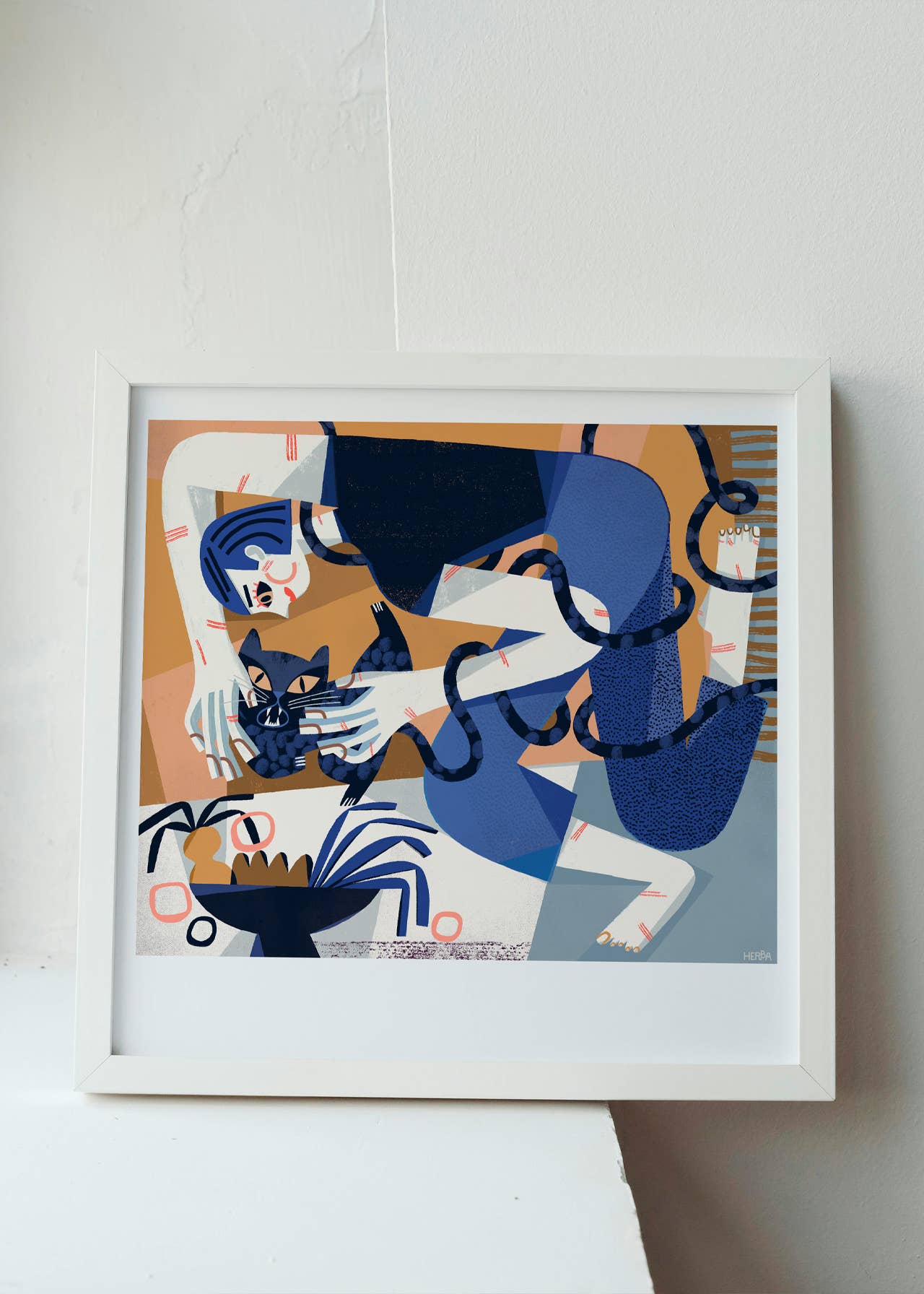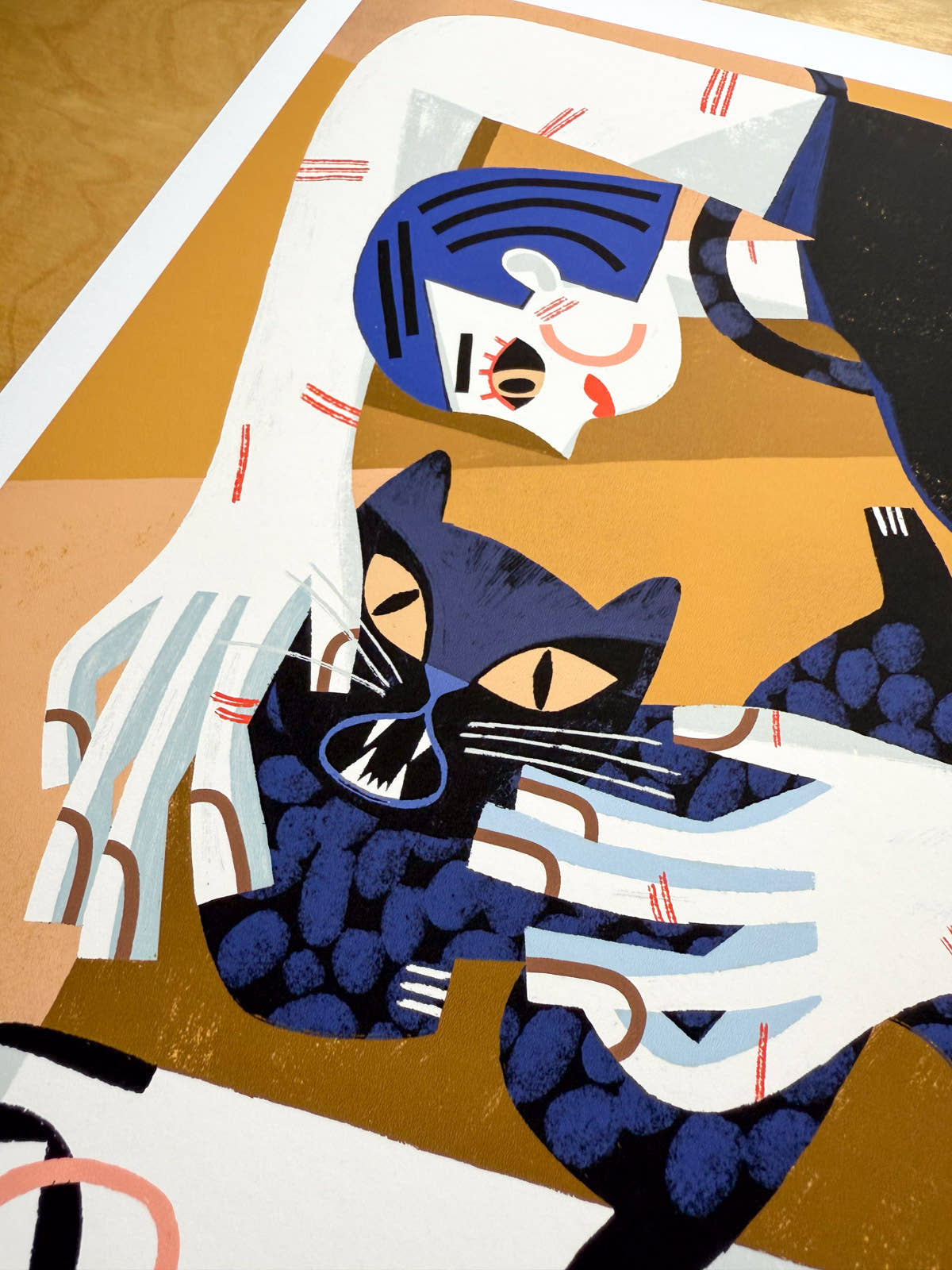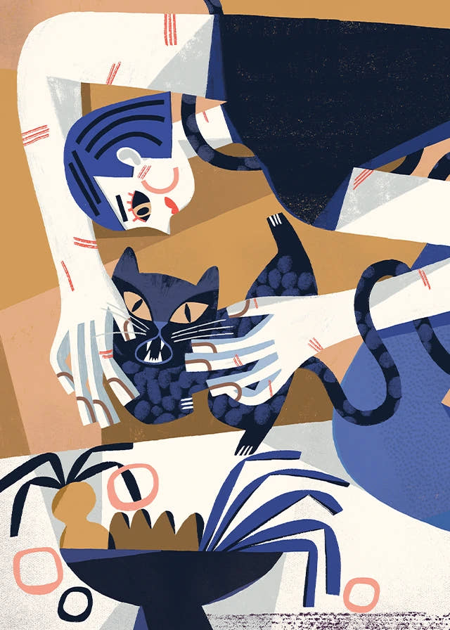 Beast. Woman with a cat, a digital illustration originally made for a collection of short stories on cats published by Wydawnictwo Czarne.