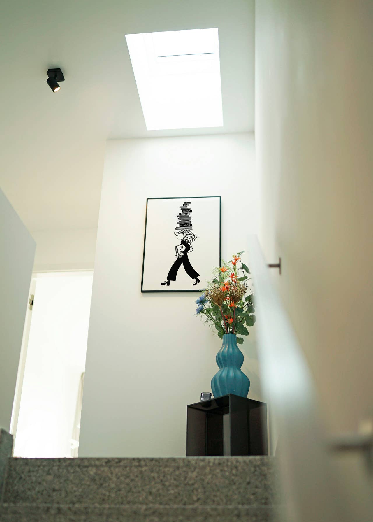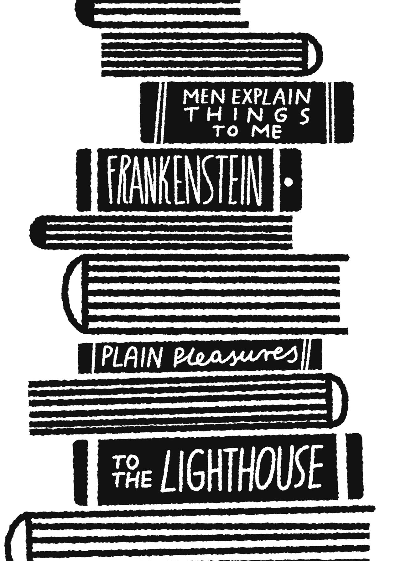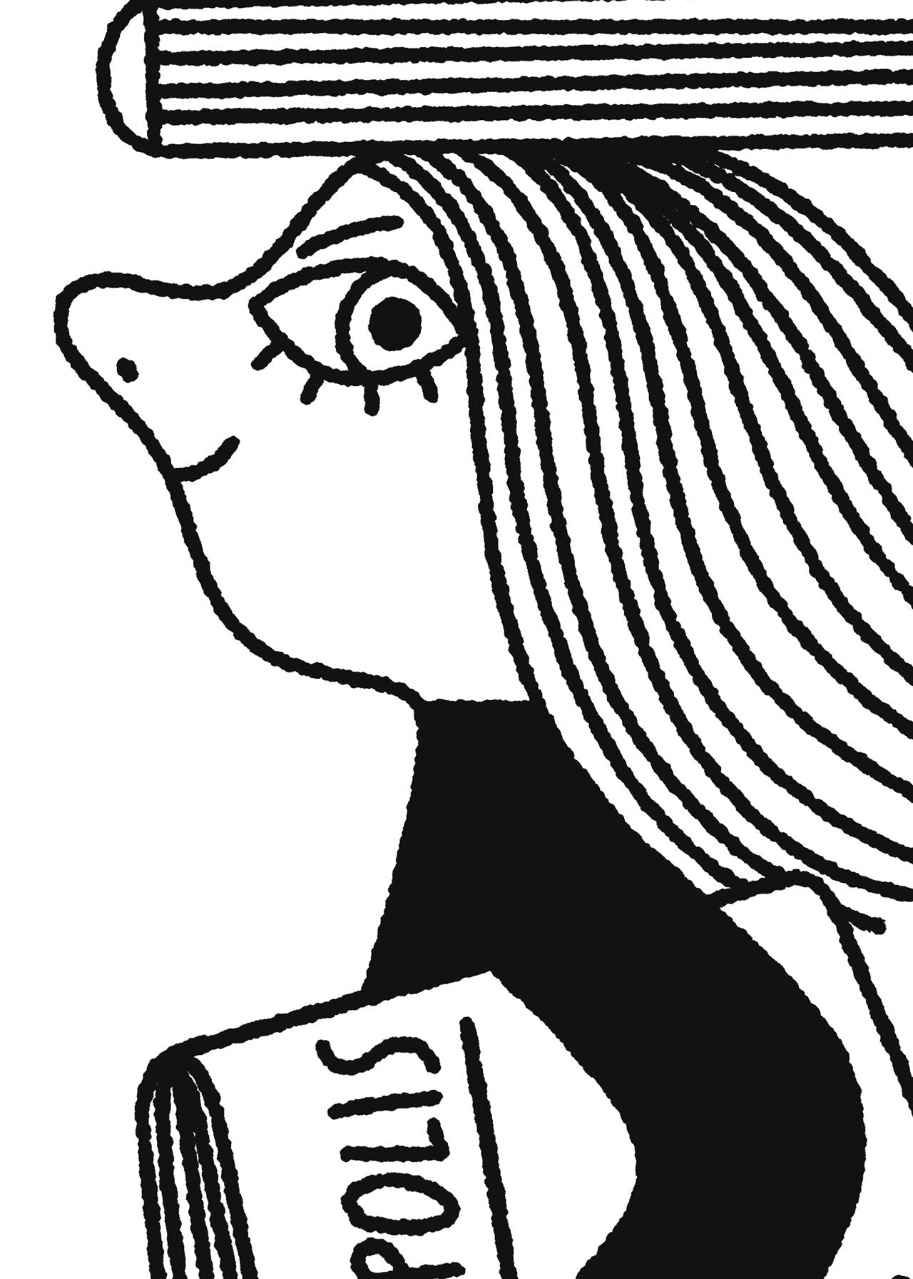 Bibliophilia, a digital illustration for all fellow book lovers: a girl carrying a stack of some of my favourite books on her head. A digital piece from my “Book Lovers” series.