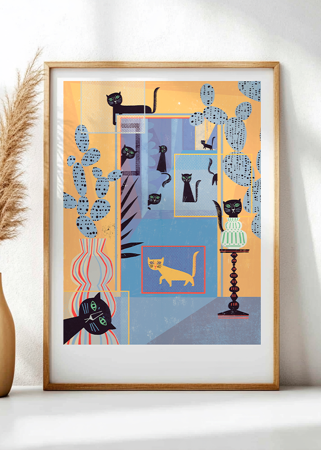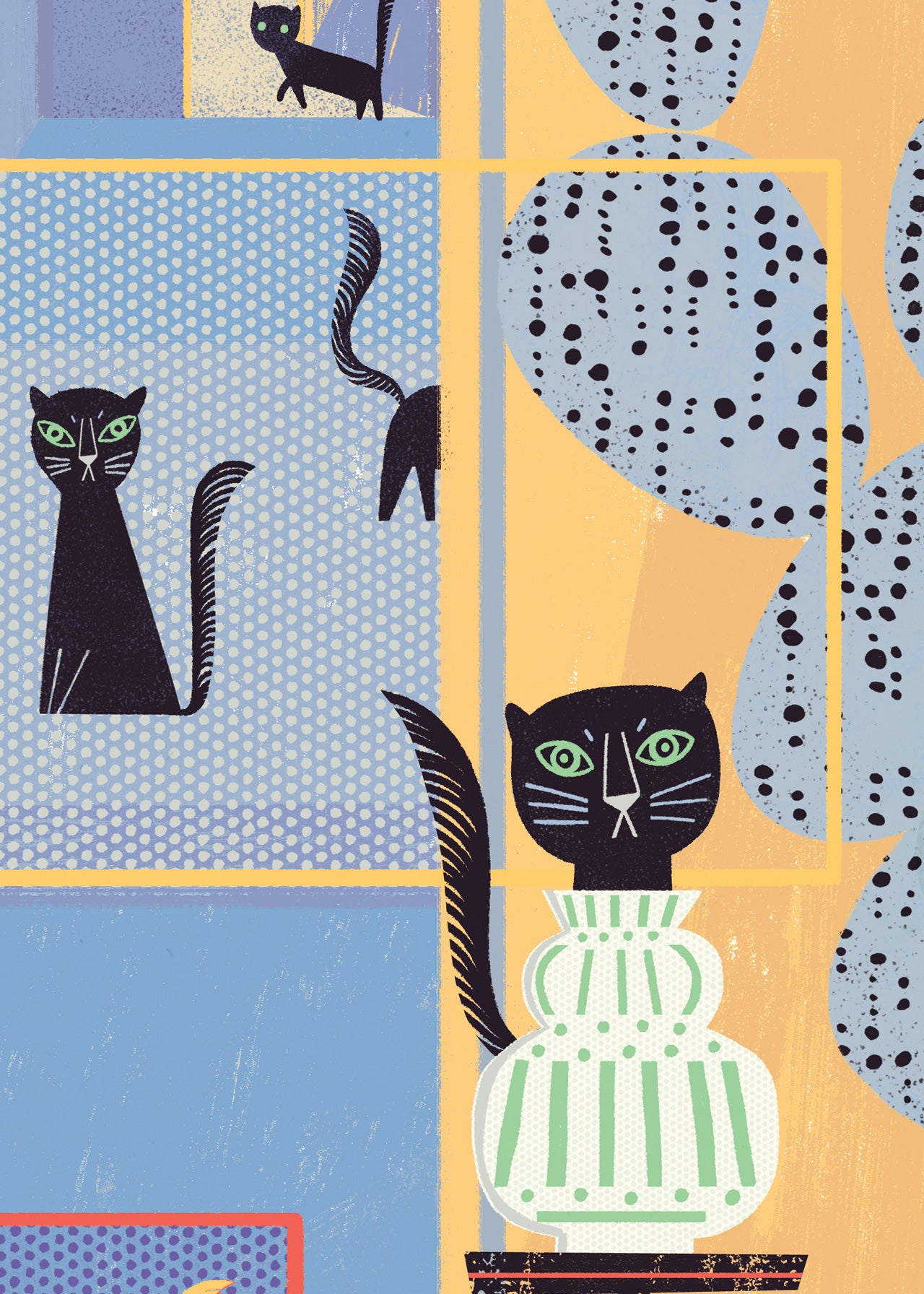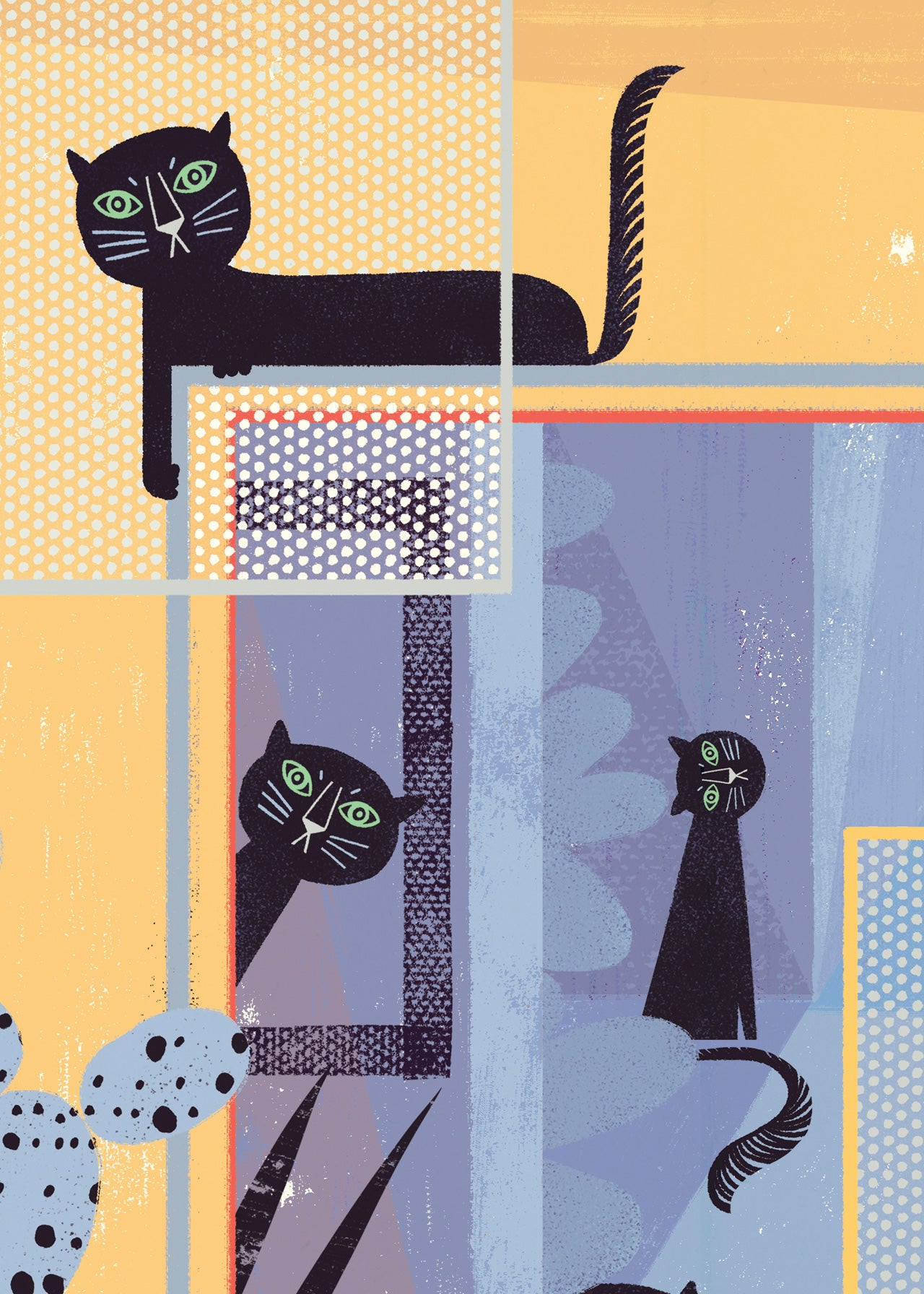 Cats, a digital illustration originally published in Tygodnik Przekrój with a story about training AI to recognise cats in photos.