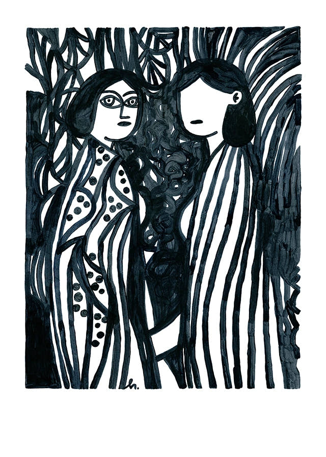 I don't remember, an illustration based on a dream I once had. I dreamt of a woman who slipped her hand under my robe. I didn't remember her face.