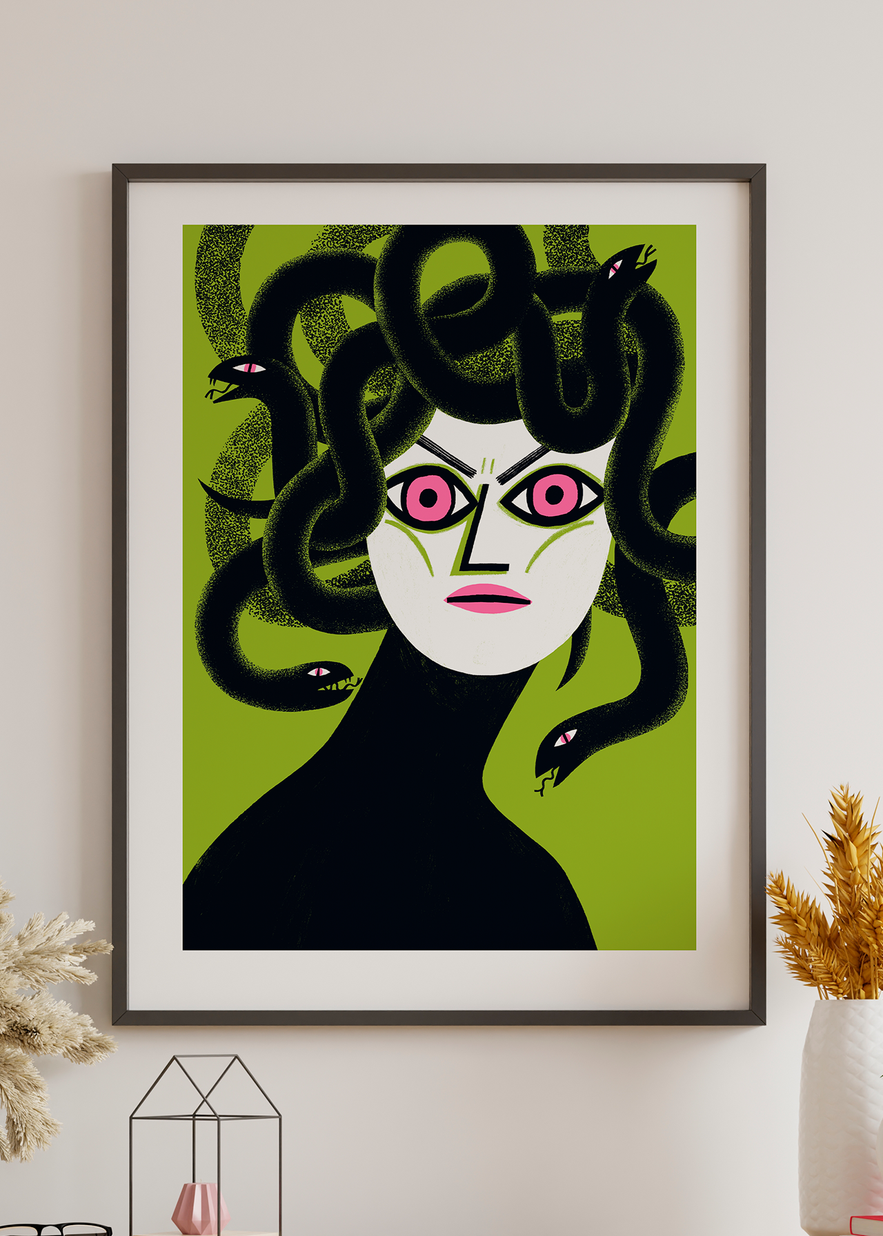 Medusa was drawn as a cover art for the Polish edition of the book Women and Other Monsters by Jess Zimmerman. My contemporary take on the mythic Gorgon. Here, in a green version.