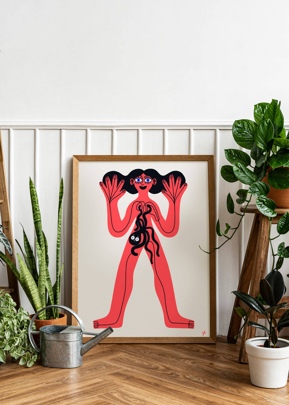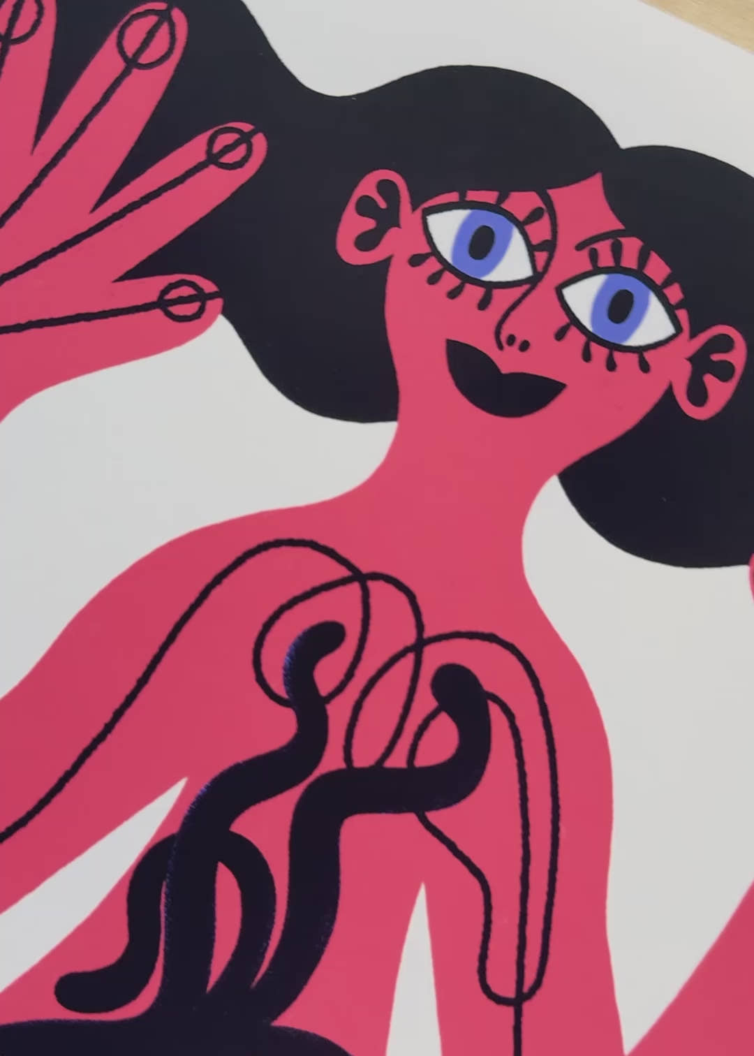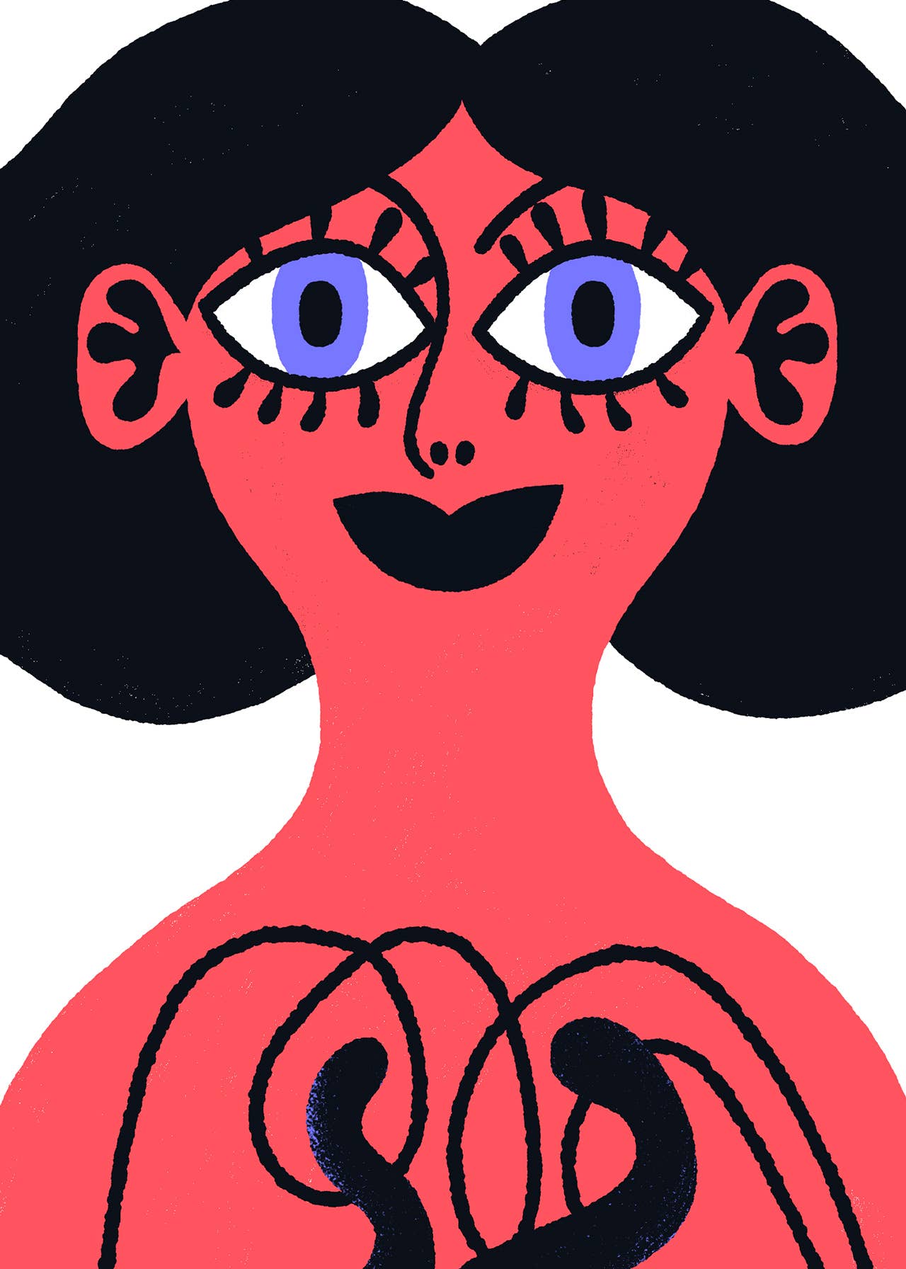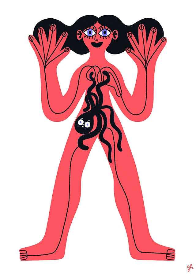 Nervous system is my spin on a medical diagram: a woman’s silhouette filled with the shape of an octopus. It is her (my) nervous system.