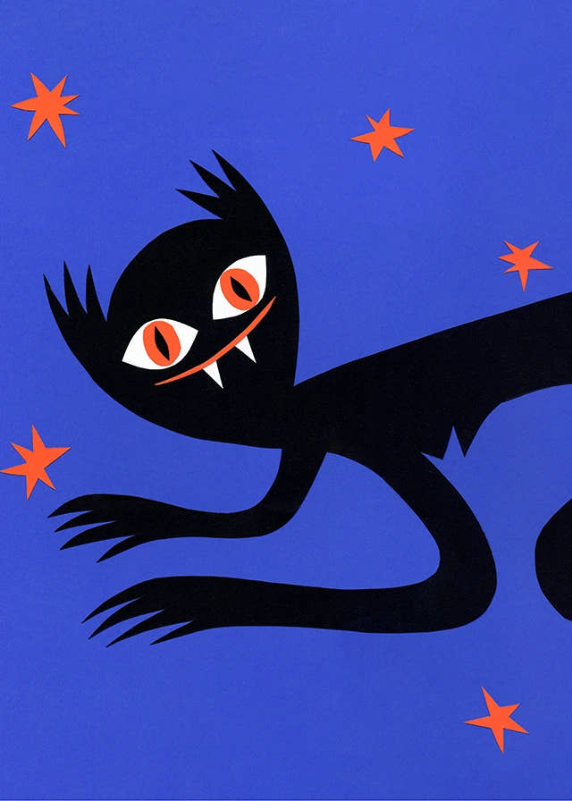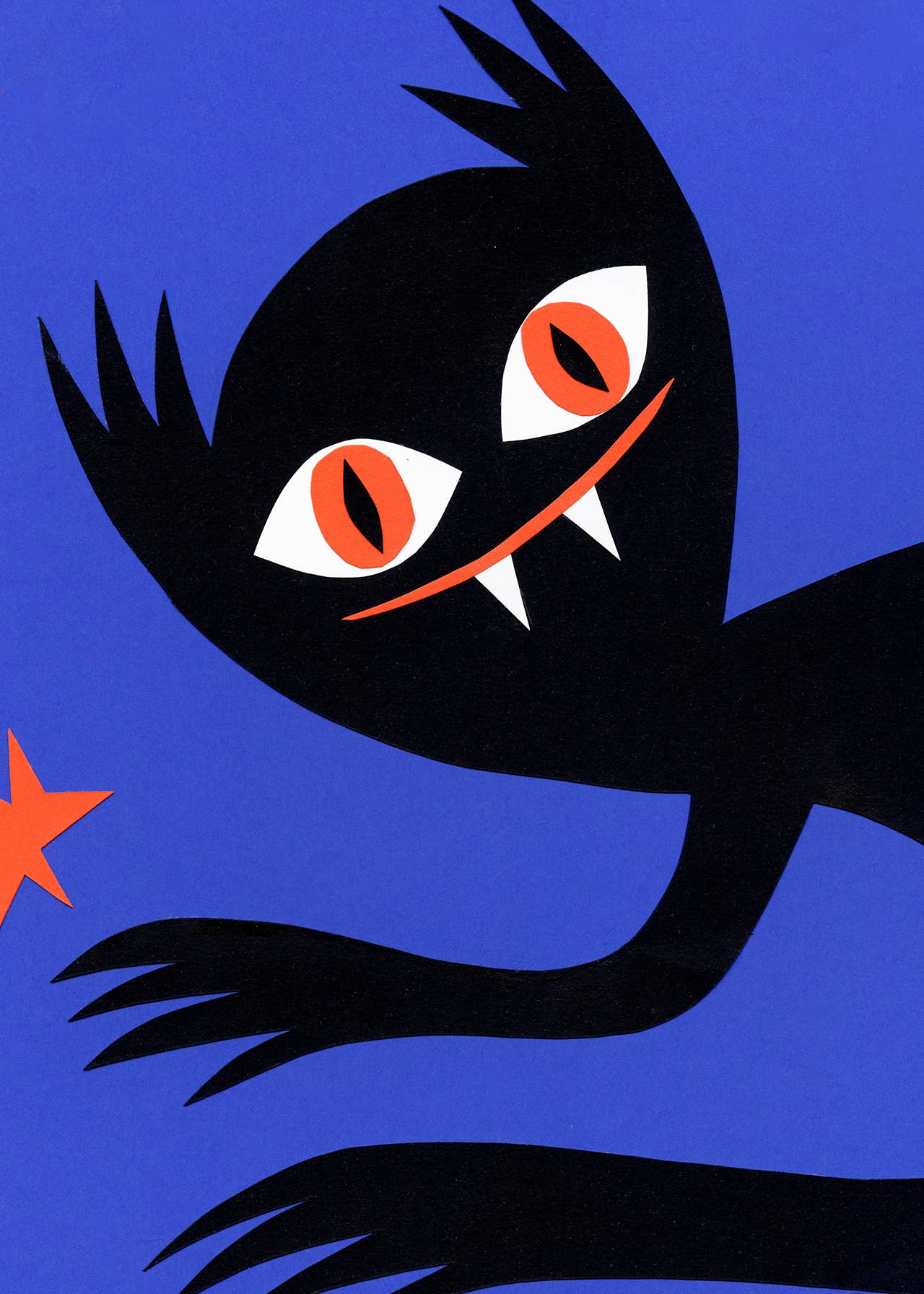 Our friendly vampire, a cut-out I made for my home to greet people coming in. A vampiress, a smiling shadow, passes by. Is she friendly, or is she luring us in?