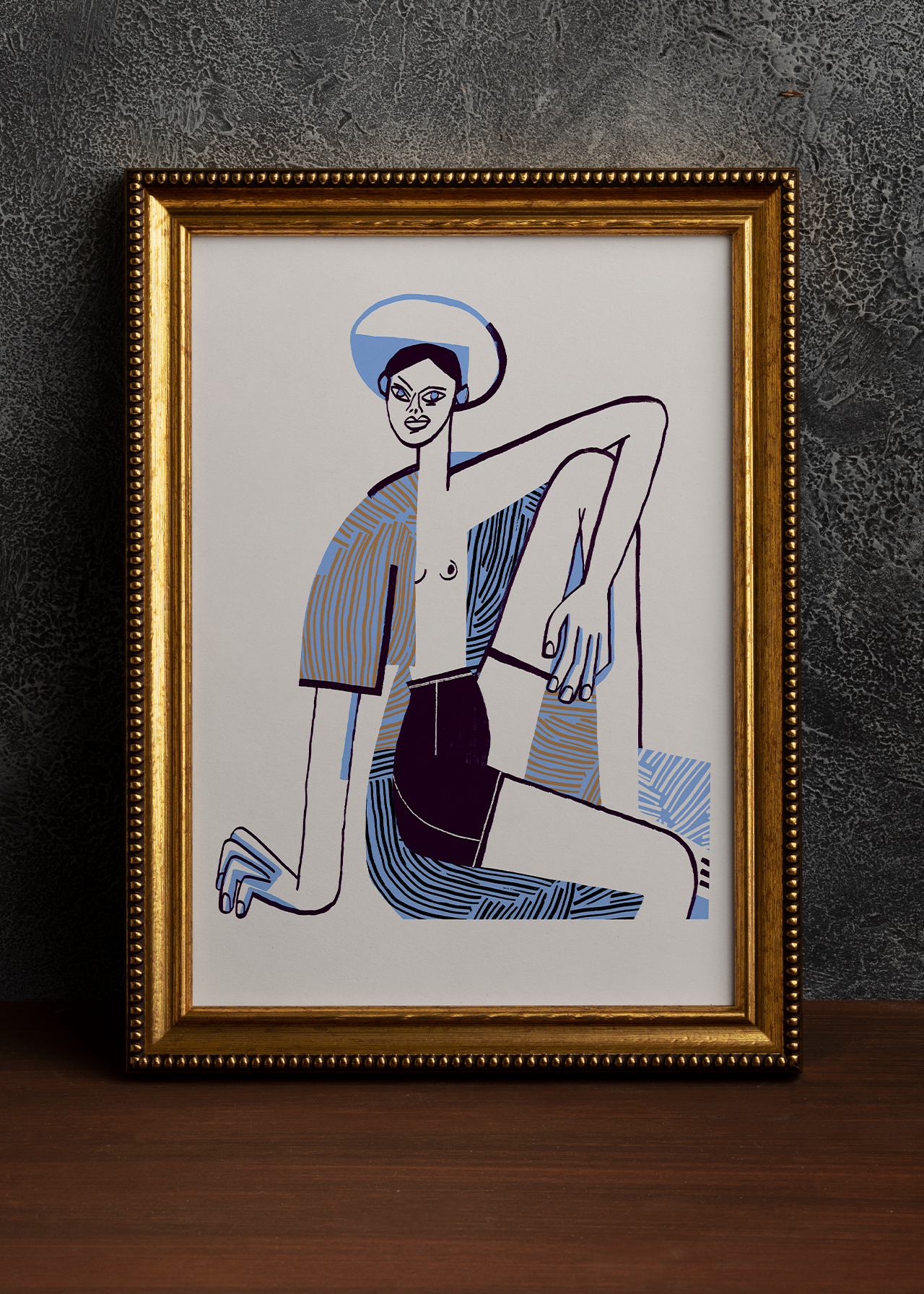 Portrait of a sitting girl is a little painting from my sketchbook: a gouache semi-nude of a girl in a hat, minimalist yet full of quiet character.