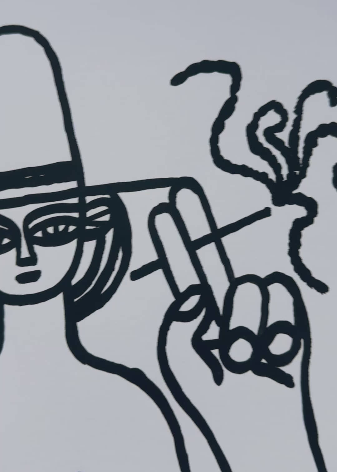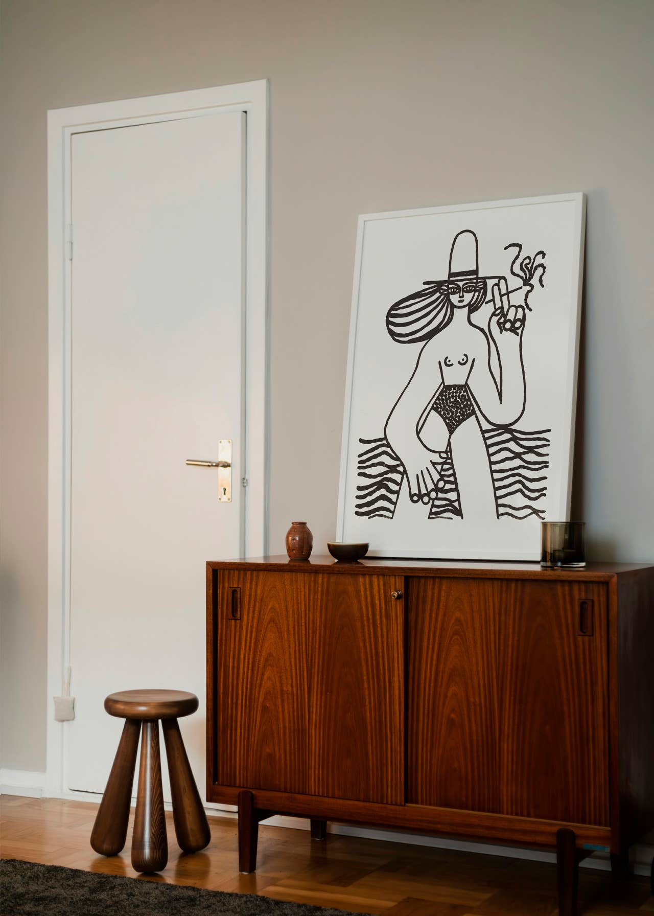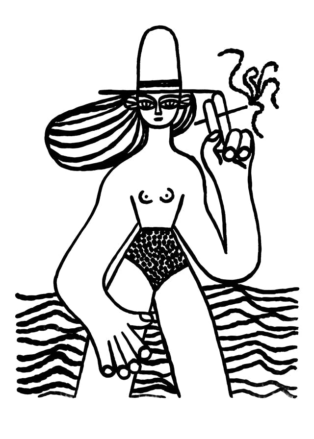 Standing in the sea, smoking a Spliff, bare-chested but wearing a hat. A snapshot of pure seaside freedom.